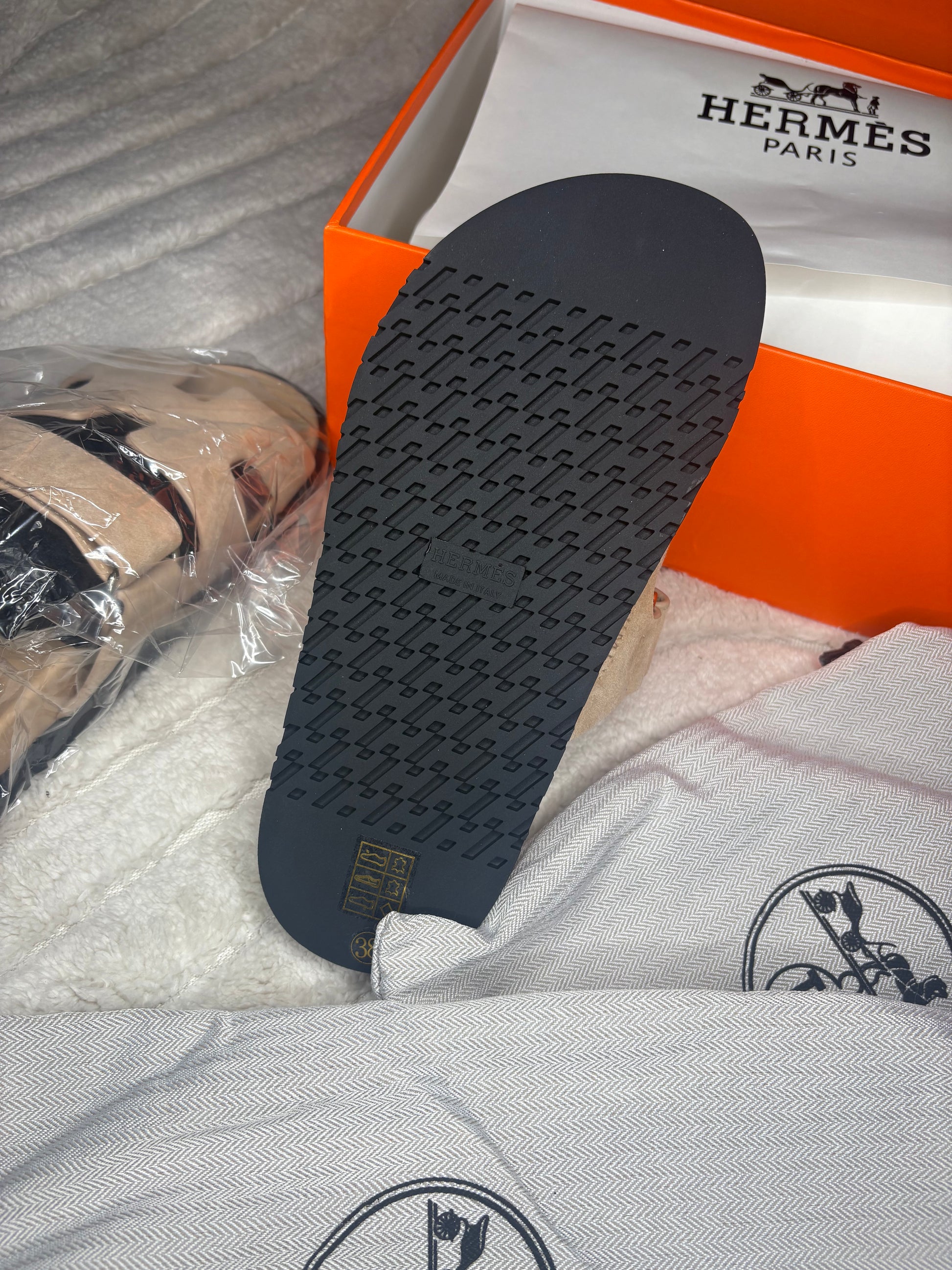 ( in stock ) size 5 H3rm3s slider suede tan